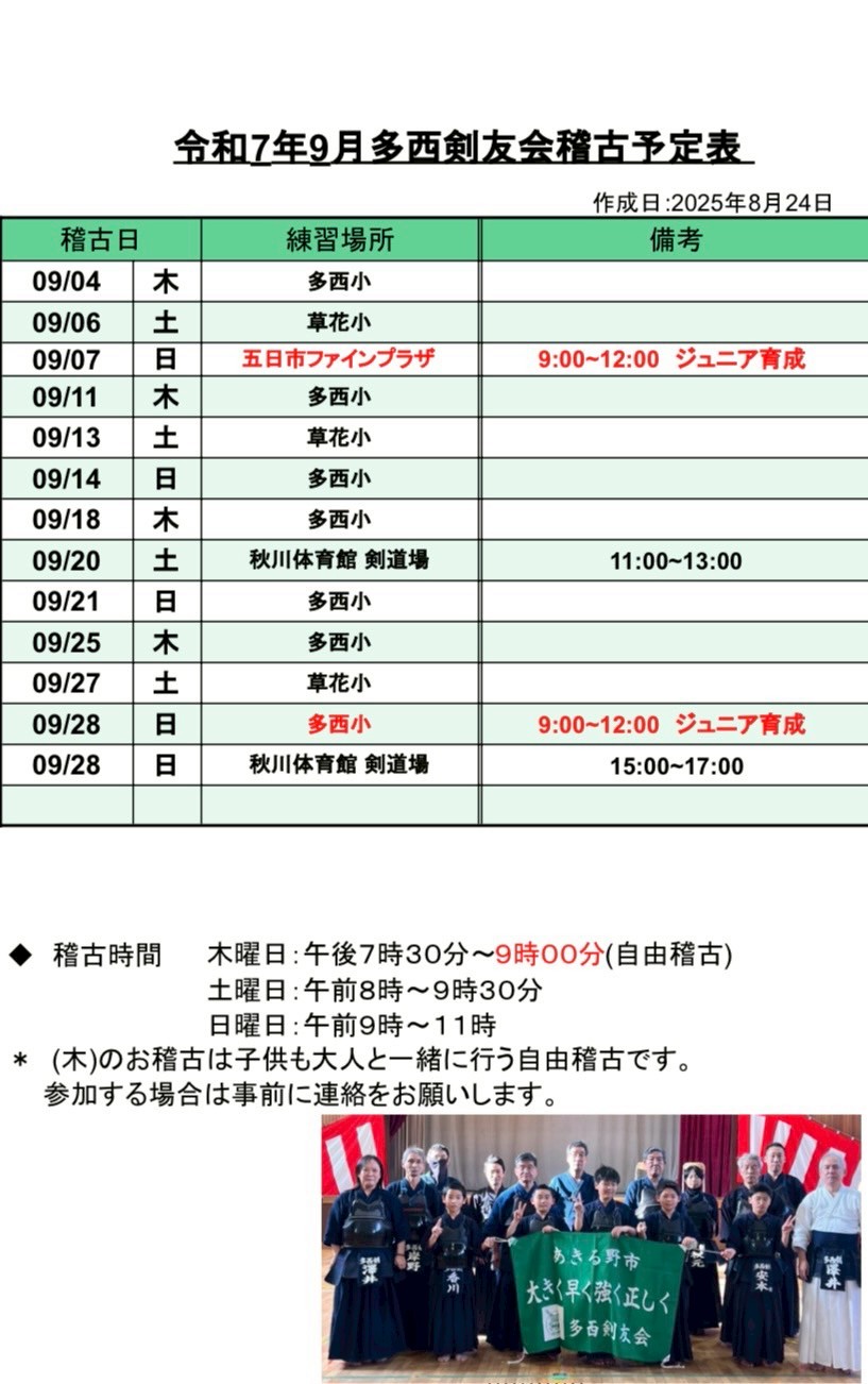 9月稽古予定