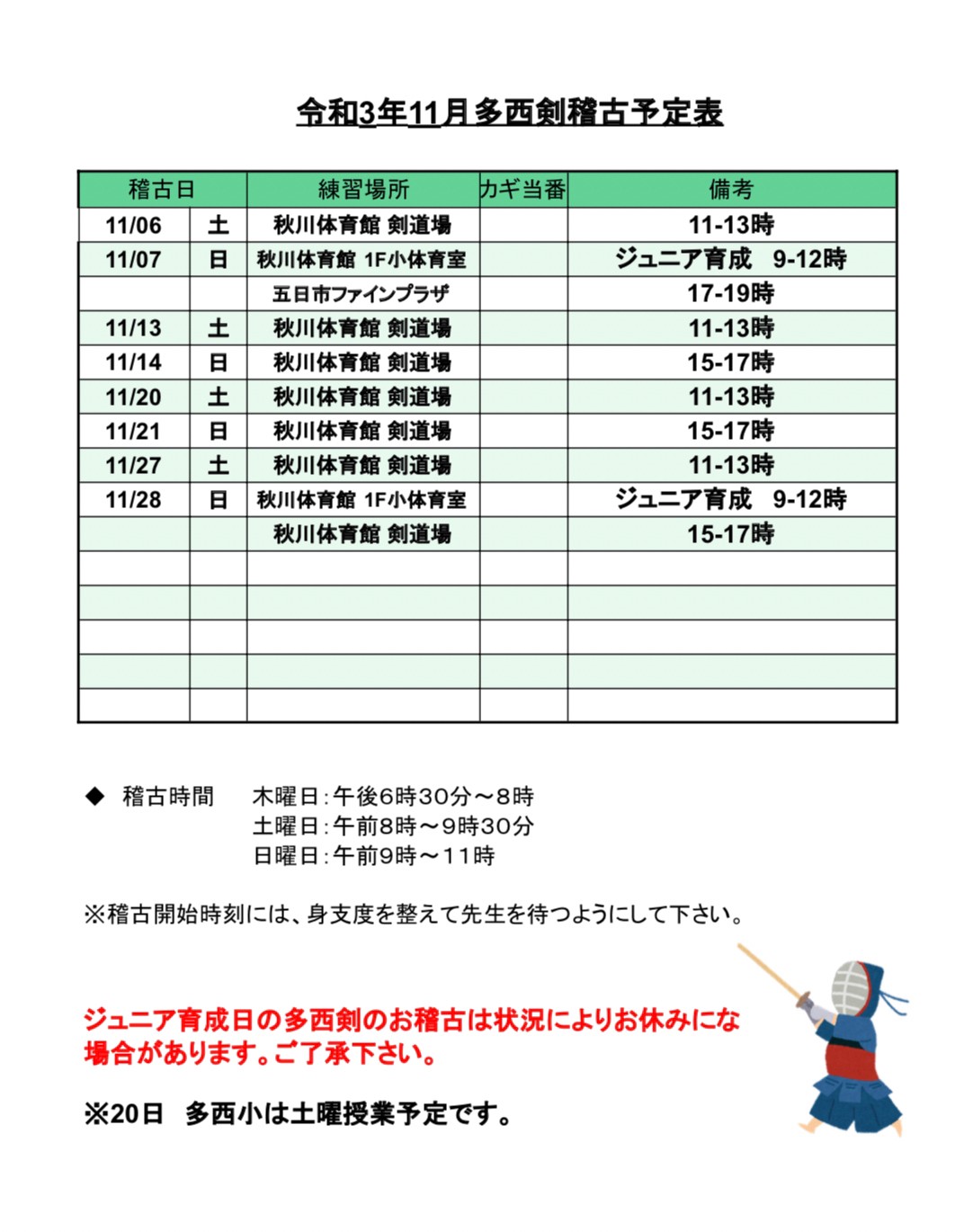 11月稽古予定