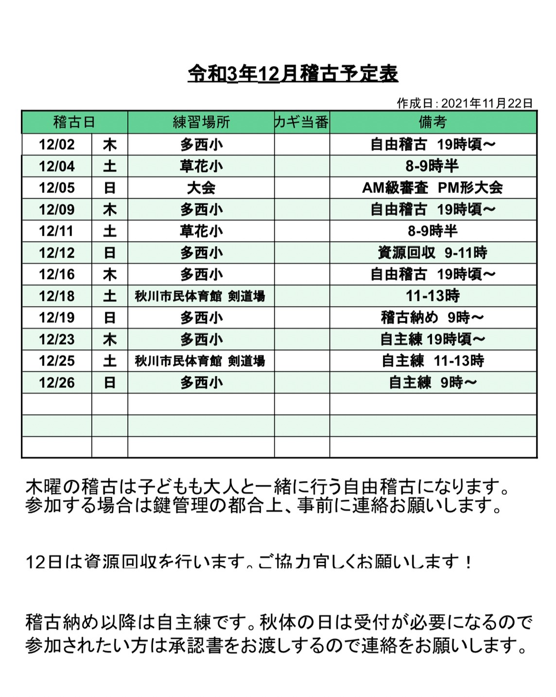 12月稽古予定