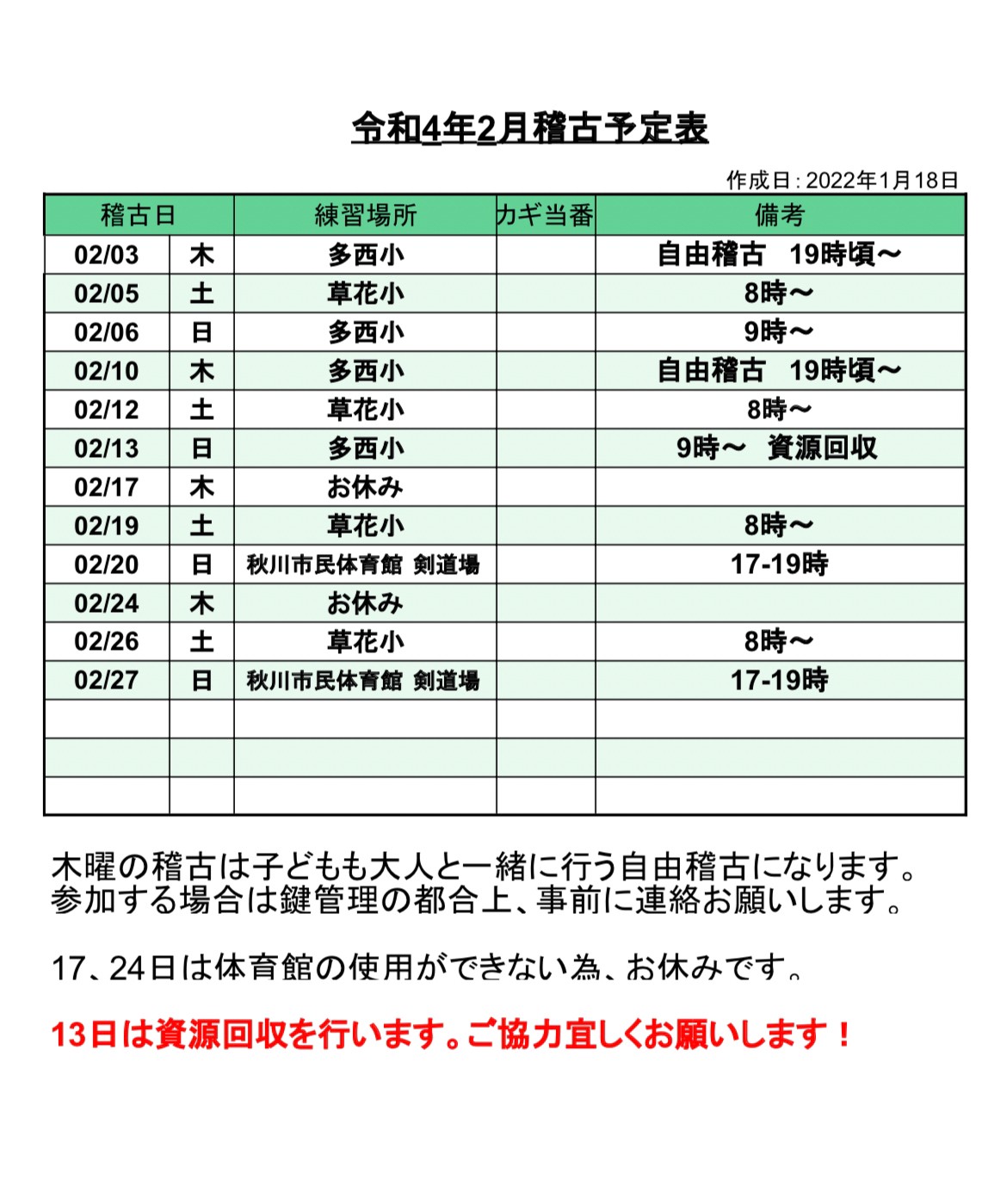 2月稽古予定