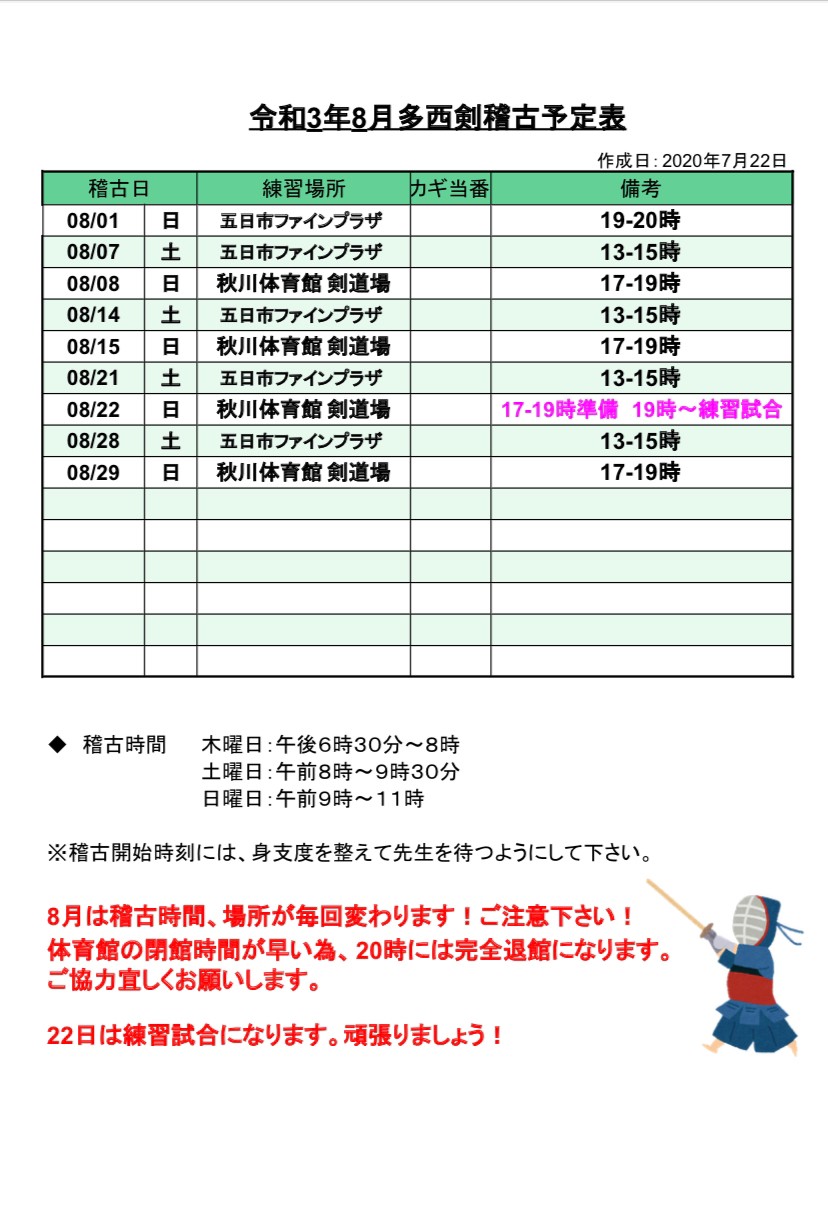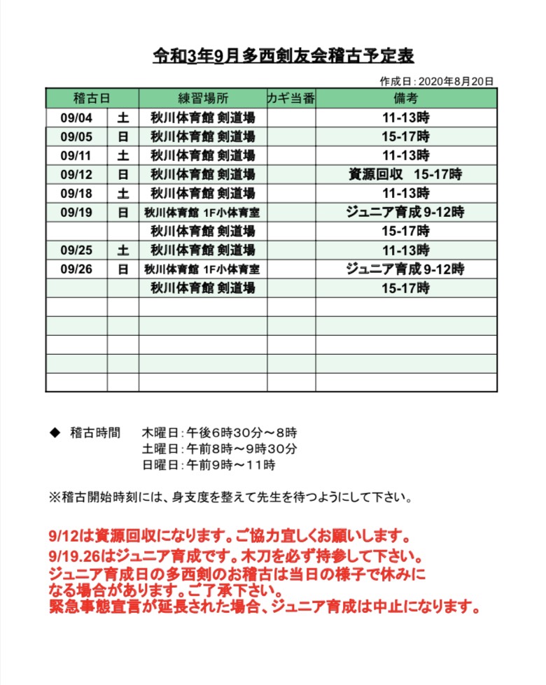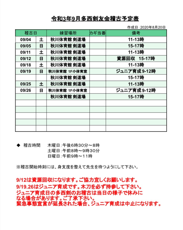 緊急事態宣言の解除をもちまして、多西剣の稽古を再開致します。