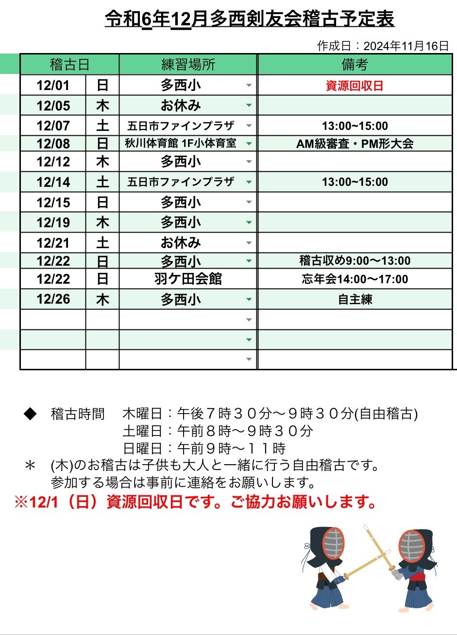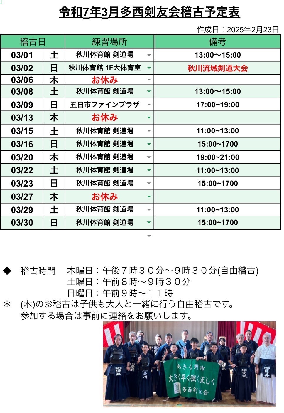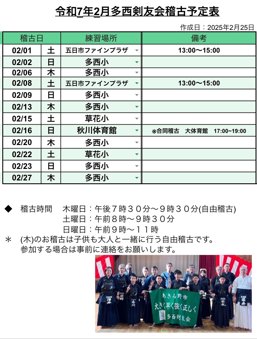 9/29(日)は、あきる野市剣連のジュニア育成の為、通常稽古はお休みとなります。