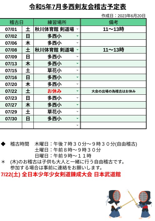 7月稽古予定
