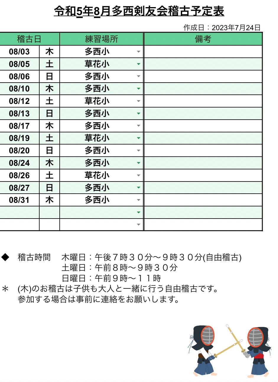 8月稽古予定