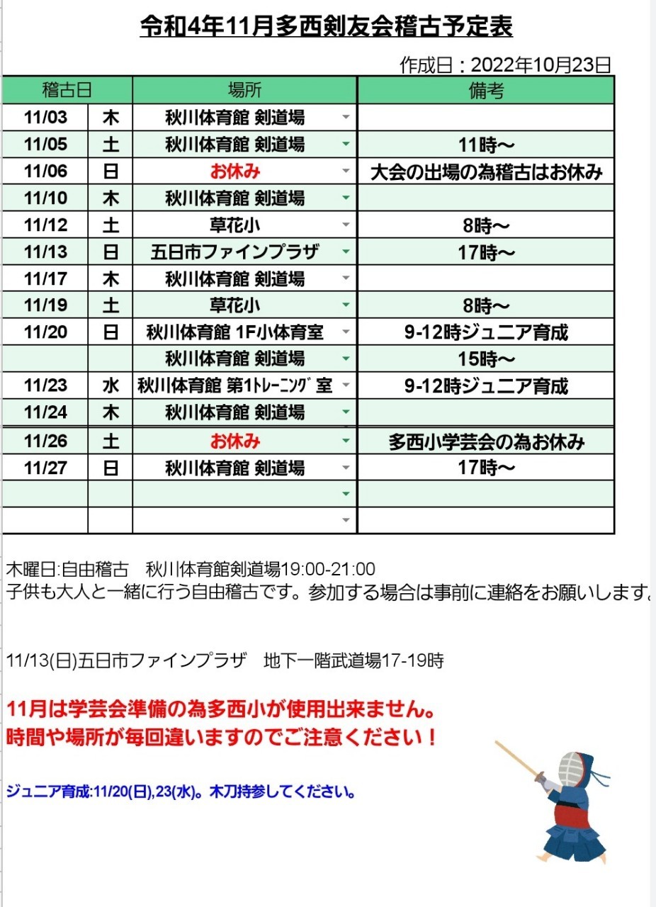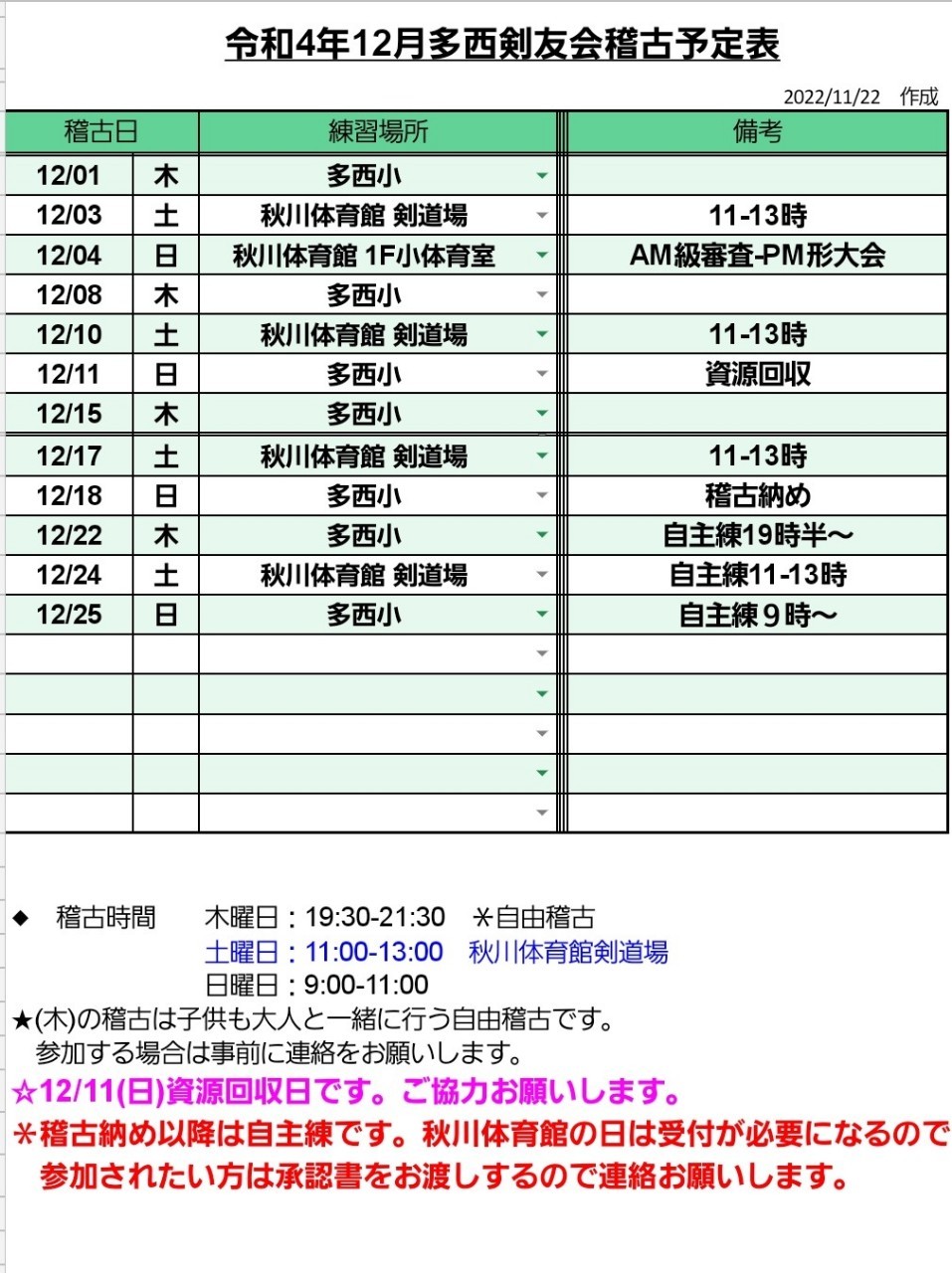コロナ感染が複数人確認されたので多西剣の稽古をしばらく休みにします。