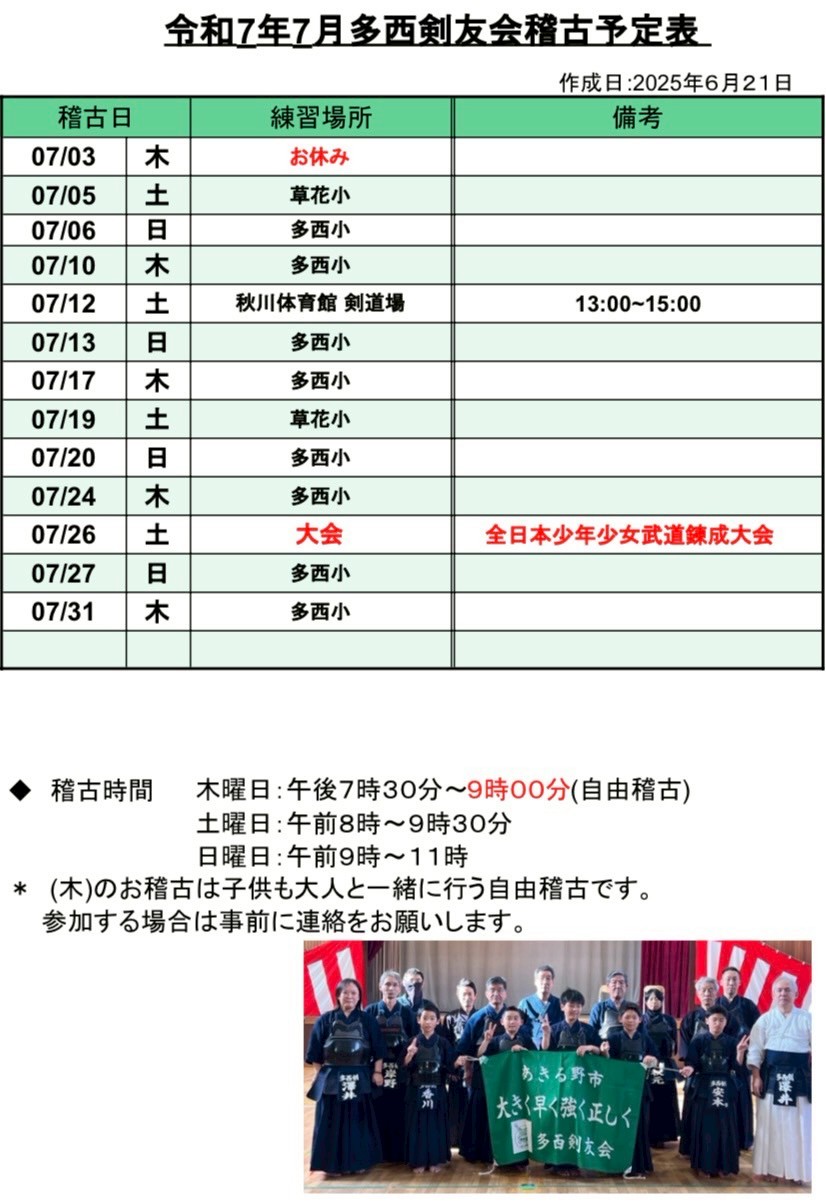 7月稽古予定