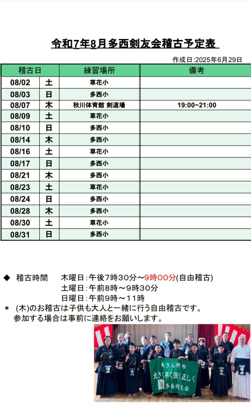 8月稽古予定