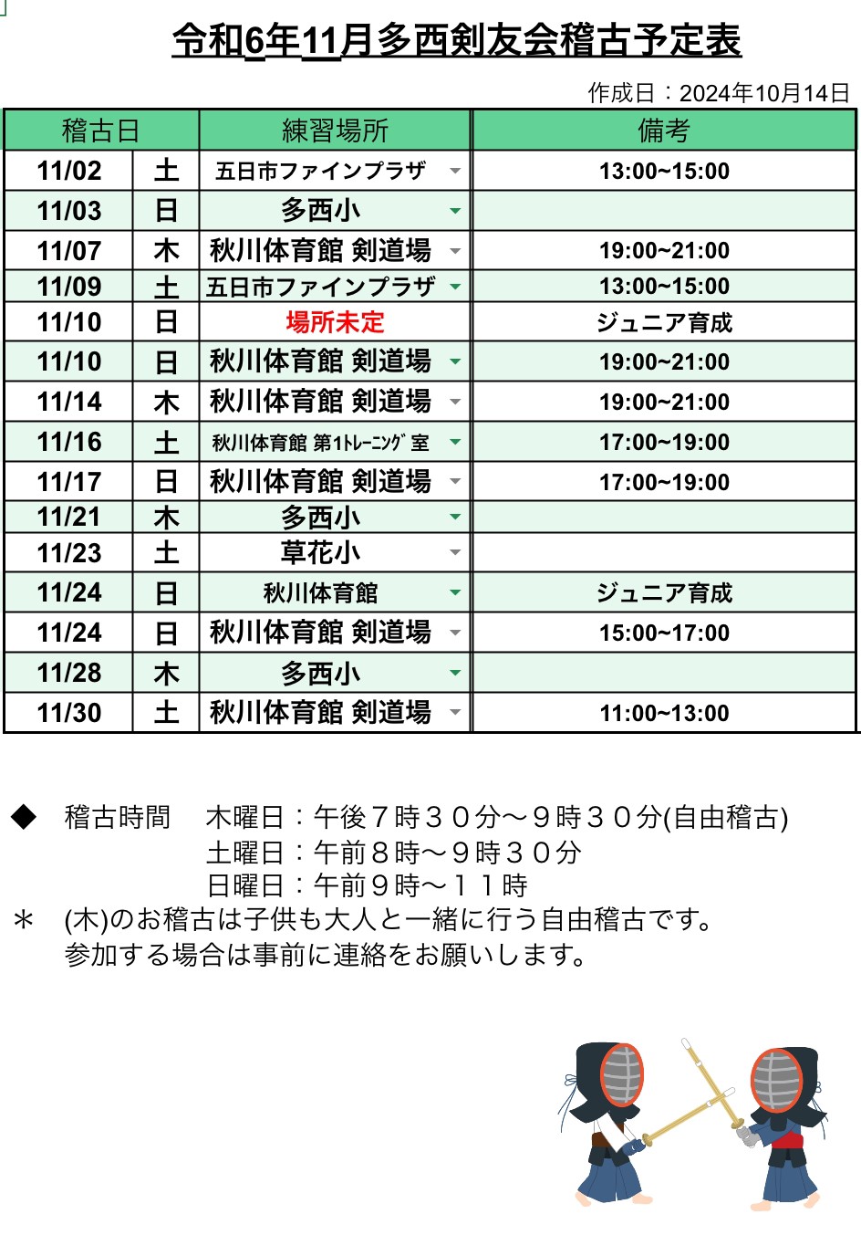 9/29(日)は、あきる野市剣連のジュニア育成の為、通常稽古はお休みとなります。